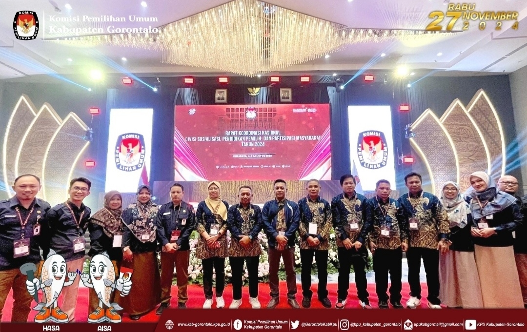GORONTALO [kabarpublik.id] – Anggota KPU Kabupaten Gorontalo, Divisi Sosialisasi, Pendidikan Pemilih, dan Parhubmas, Sowan S. Dehi, bersama dengan Kasubag Sosdiklih dan Parhubmas, Haris Pomanto, mengikuti Rapat Koordinasi Nasional (Rakornas) yang diselenggarakan oleh KPU RI.
