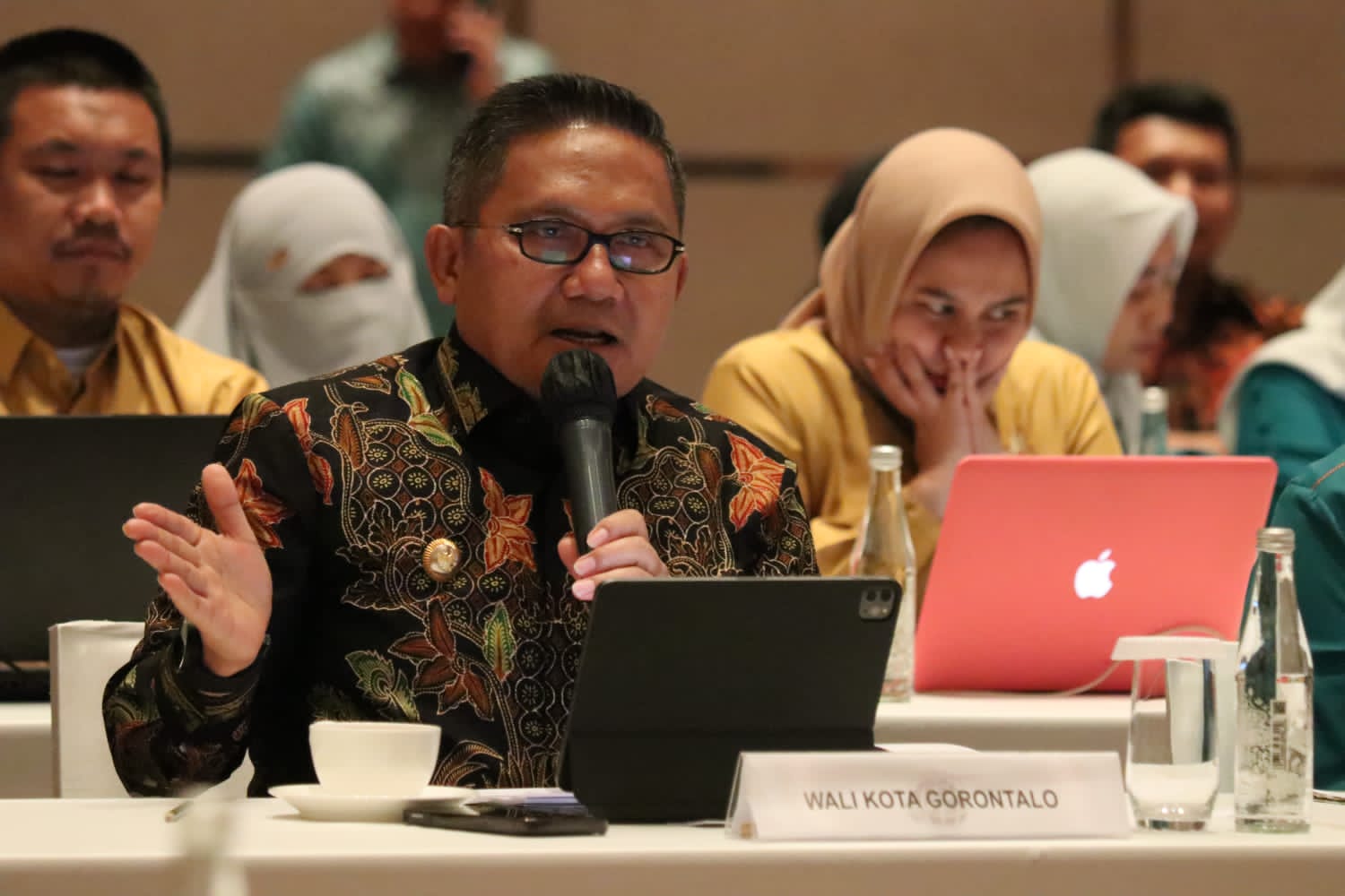 Pada rapat koordinasi lintas sektor tersebut, di hadapan pimpinan kementerian, lembaga pusat juga pemerintah provinsi/ kabupaten se- Provinsi Gorontalo, Marten memaparkan berbagai masukan konsep lintas sektor yang ada di Kota Gorontalo dan dianggap perlu di dalam Ranperda, di Fairmont Hotel Jakarta, Kamis (19/10/2023).