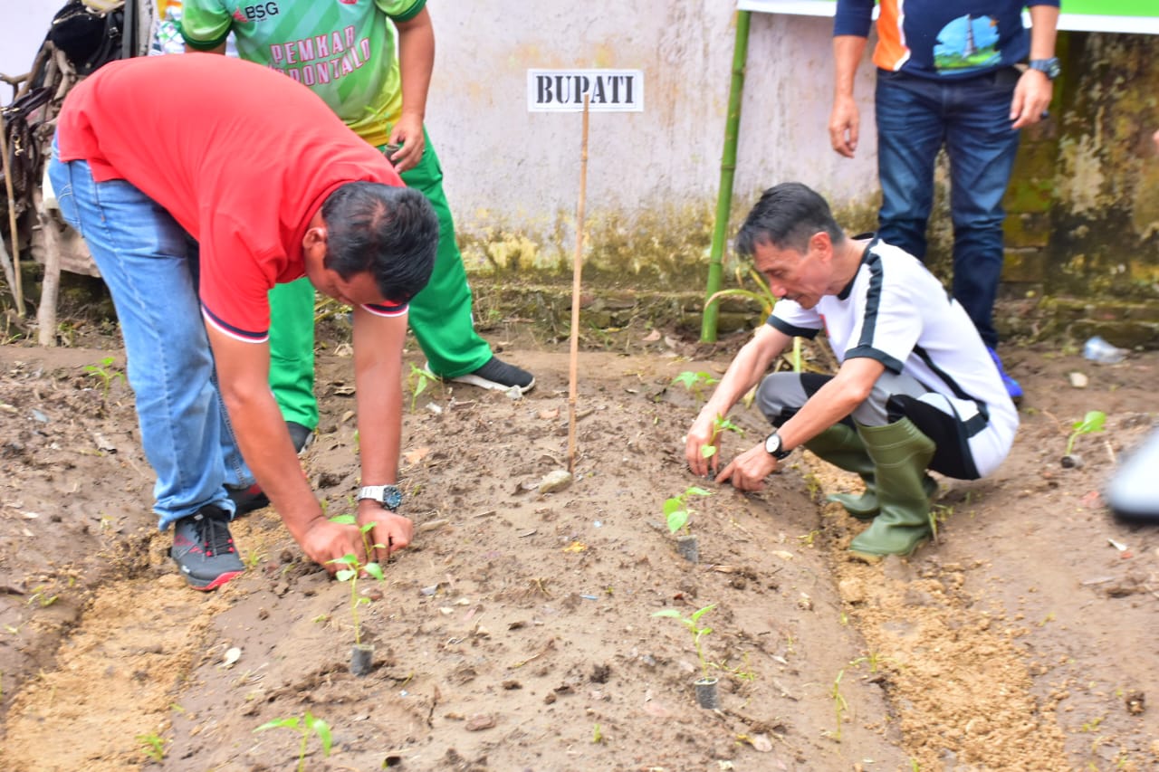 Gerakan menanam cabai serentak ini melibatkan seluruh desa dan kecamatan di Kabupaten Gorontalo, dengan luas lahan mencapai kurang lebih 19 Ha dan jumlah tanaman cabai sebanyak 2520 pohon.