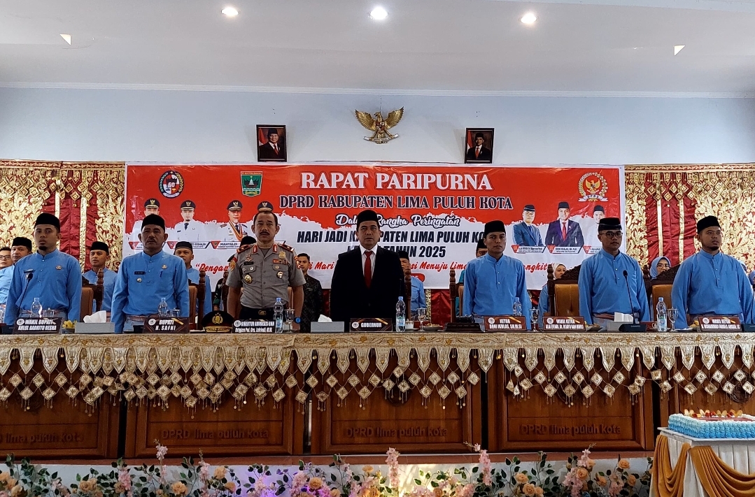 SUMATERA BARAT[kabarpublik.id] – Kabupaten Limapuluh Kota memperingati hari jadinya yang ke-184 pada Minggu (13/4/2025) dengan mengusung semangat transformasi dan kebangkitan. Peringatan ini ditandai dengan Sidang Paripurna Istimewa DPRD yang dibuka oleh Ketua DPRD Lima Puluh Kota Doni Ikhlas, S.H., M.Si dan dihadiri Bupati Limapuluh Kota H. Safni, Wakil Bupati Limapuluh Kota, Ahlul Badrito Resha, Forkopimda Limapuluh Kota, Tokoh Masyarakat, Direktur Advokasi Badan Narkotika Nasional (BNN) RI Brigjen Pol Drs. Jafriedi, MM dan Pemprov Sumatera Barat.