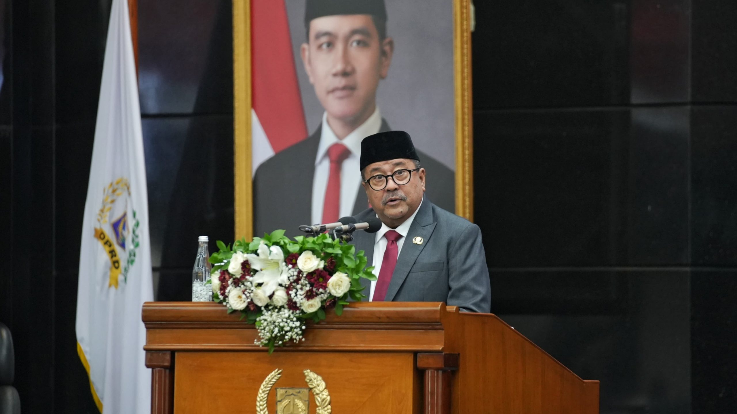 Wakil Gubernur DKI Jakarta Rano Karno saat menyampaikan LKPJ Tahun Anggaran 2025 dalam Rapat Paripurna DPRD DKI Jakarta di Gedung DPRD, Jakarta Pusat. (Sumber: jakarta.go.id)