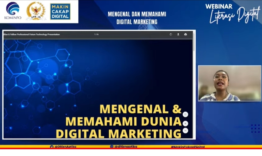 “Selain itu bisa lebih efektif, efisien dalam penggunaan dana untuk kepentingan usaha/bisnis,” ujar Sherly selaku narasumber pada Webinar Literasi Digital yang diselenggarakan oleh Direktorat Aplikasi dan Informatika Kemkominfo RI dengan tema ‘Mengenal dan Memahami Digital Marketing’, secara virtual. Jakarta, Rabu (19/04/2023)