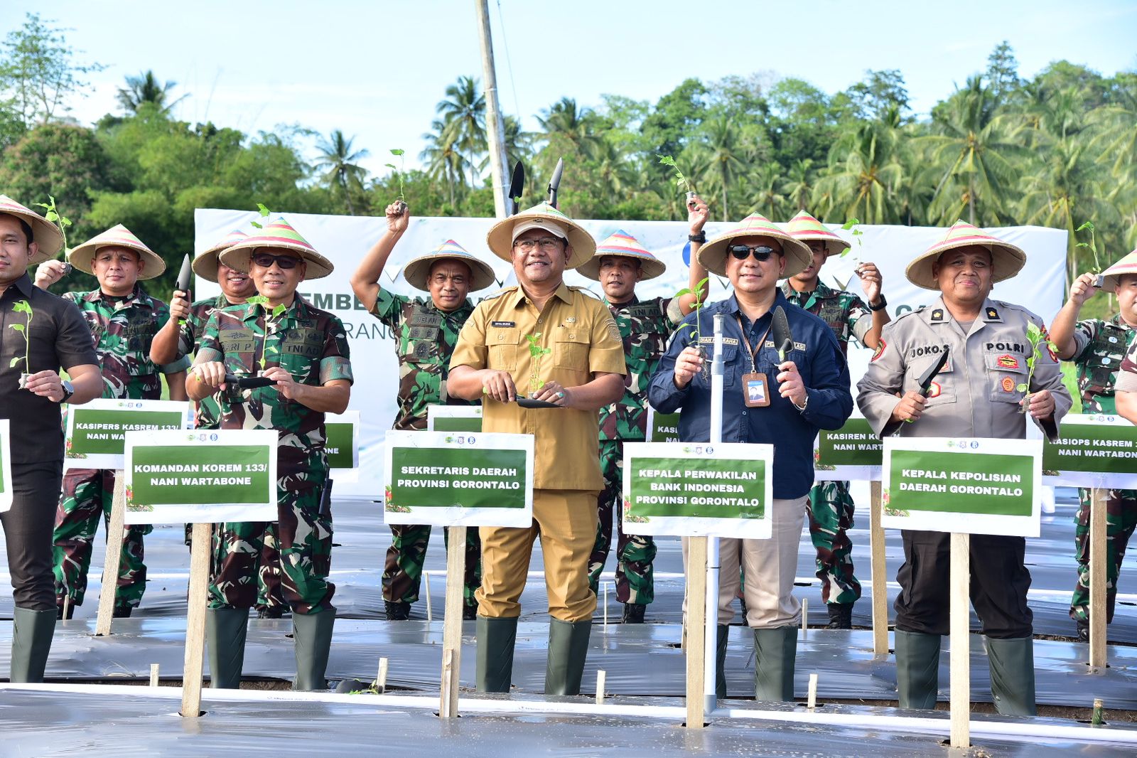 Penyerahan sekaligus penanaman bibit secara simbolis dilakukan oleh Sekretaris Daerah Provinsi Gorontalo Sofian Ibrahim, Komandan Korem Brigjen TNI Hari Pahlawantoro, Kepala BI Perwakilan Gorontalo, serta jajaran Forkompinda lainnya. Bibit rica ditanam pada lahan Korem dengan luas 1.400 meter persegi, Selasa (3/12/2024).