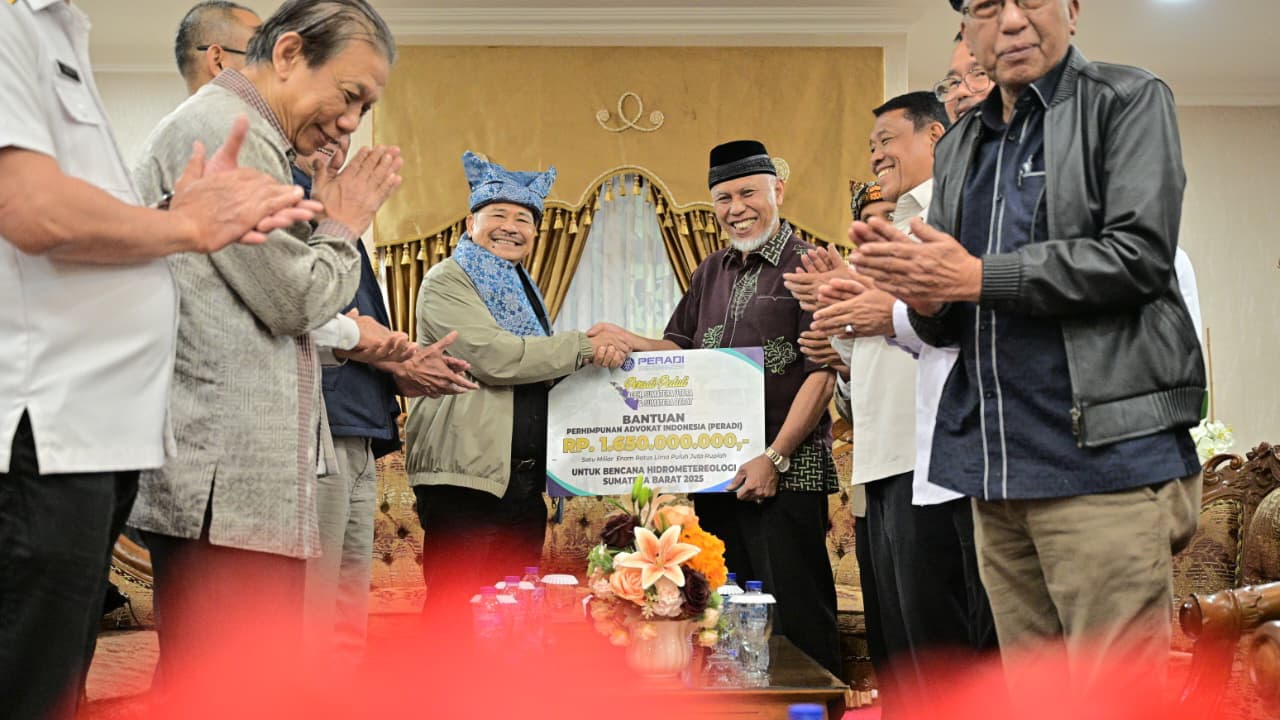 Saat menerima bantuan tersebut, Gubernur Mahyeldi menyampaikan apresiasi atas kepedulian PERADI dalam membantu masyarakat yang terdampak bencana di Sumbar.