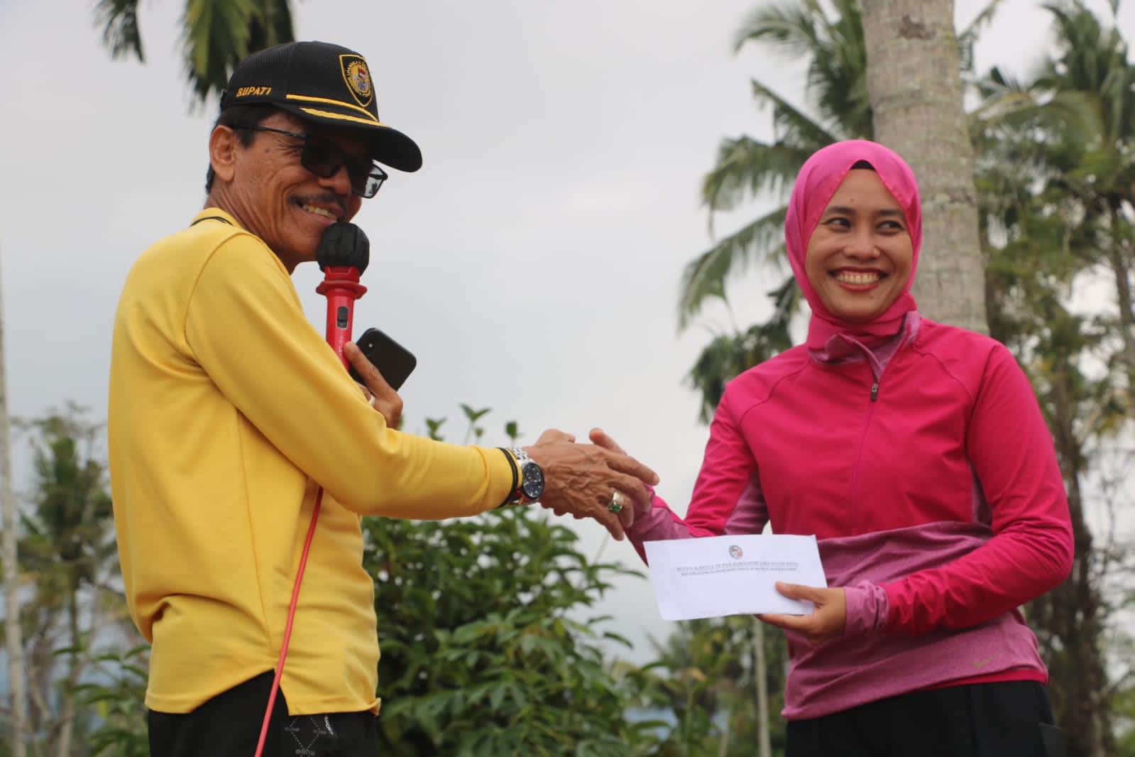 Dihadapan ratusan peserta, Bupati Safaruddin memberikan apresiasi kepada masyarakat nagari Simalanggang beserta panitia yang telah mendukung kesuksesan penyelenggaraan lomba senam pada peringatan HUT ke 2 G-Sima ini.