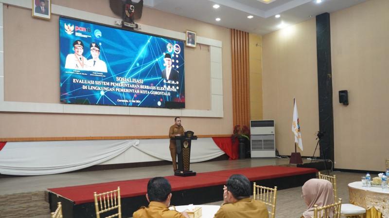 Kegiatan sosialisasi evaluasi penerapan SPBE yang dilaksanakan di Banthayo Lo Yiladia tersebut dibuka oleh Sekda Kota Gorontalo, Ismail Madjid, dan menghadirkan dua narasumber, yakni Ichwanul Muslim dari Direktorat Layanan APTIKA Kemenkominfo serta Hamza Ifansuri, Asisten Deputi Perumusan dan Koordinasi Penerapan SPBE.
