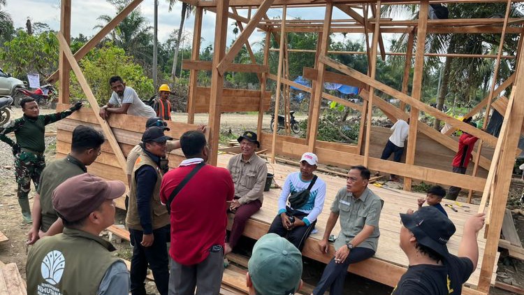 Saat ini, pemanfaatan oleh masyarakat dan lembaga kemanusiaan tercatat mencapai 28,86 meter kubik, dengan progres dua unit huntara dalam pembangunan dan satu unit telah rampung.