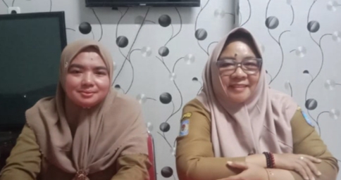 Kepala SMP Negeri 2 Kota Ternate, Nurhayati Pandawa, S.Pd, M.Pd (kanan/kacamata) bersama Ketua Panitia MPLS, Nani (kiri) usai memberikan penjelasan tentang pelaksanaan MPLS. [Istimewa].