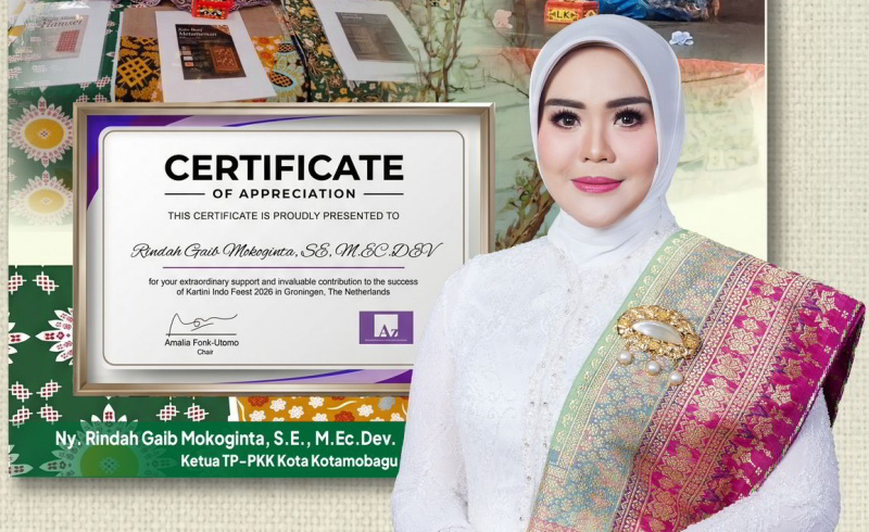 KOTAMOBAGU (kabarpublik.id) – Aktif mempromosikan salah satu Budaya Daerah di Indonesia khususnya motif kain khas Kota Kotamobagu, Ketua TP -PKK Kota Kotamobagu Rindah Gaib Mokoginta, mendapatkan penghargaan Internasional di ajang Kartini Indo Fest 2026 , yang berlangsung di Groningen Negeri Belanda.
