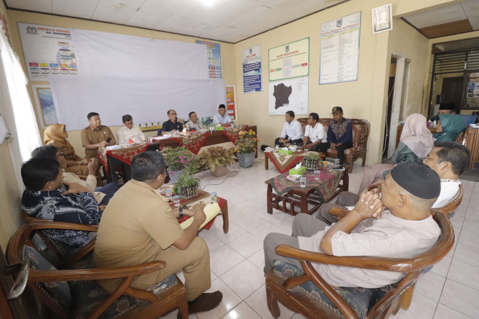 “Pada hari ini kita turun lapangan dalam rangka mengecek kegiatan layanan yang dilaksanakan oleh Kelurahan. Sebagaimana yang kita ketahui bersama di kelurahan ada 3 tugas pokok yaitu pelayanan administrasi, pelayanan pembangunan dan pelayanan kelembagaan masyarakat,” Ujar Joko