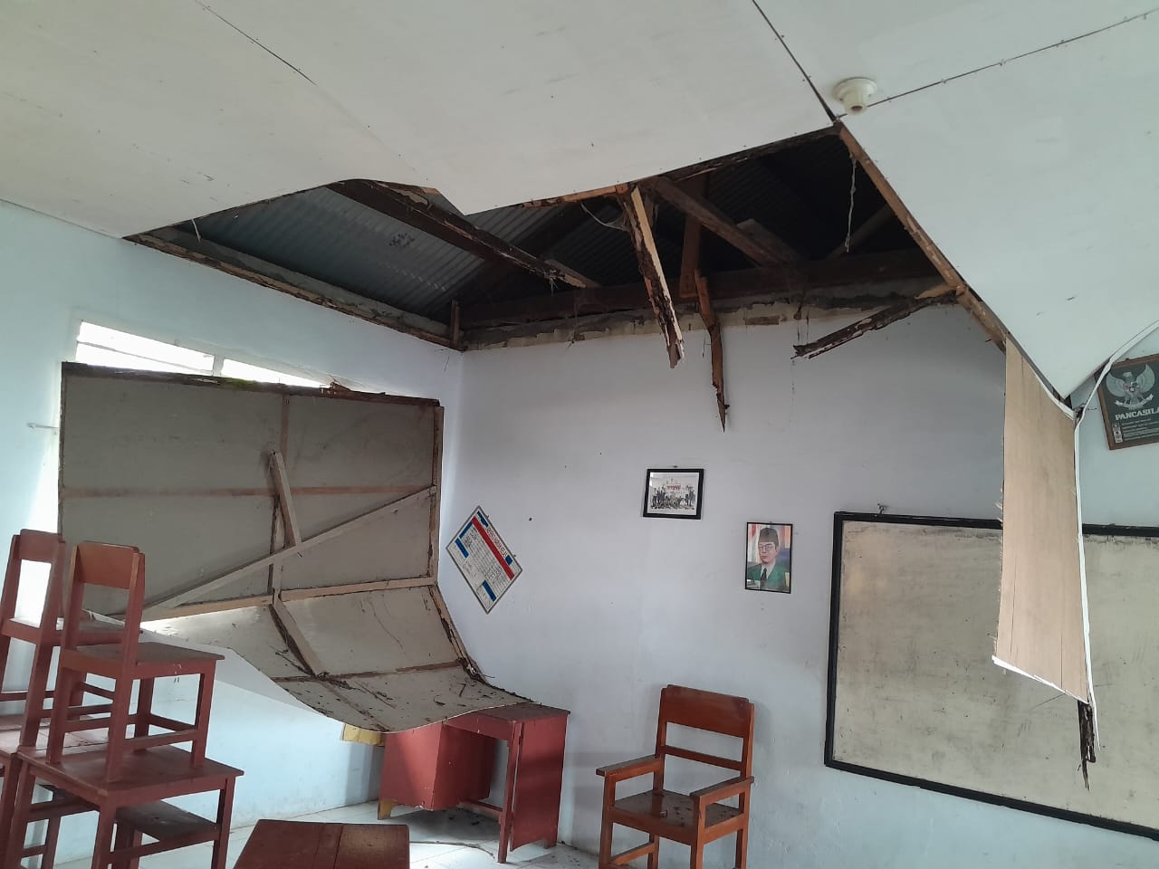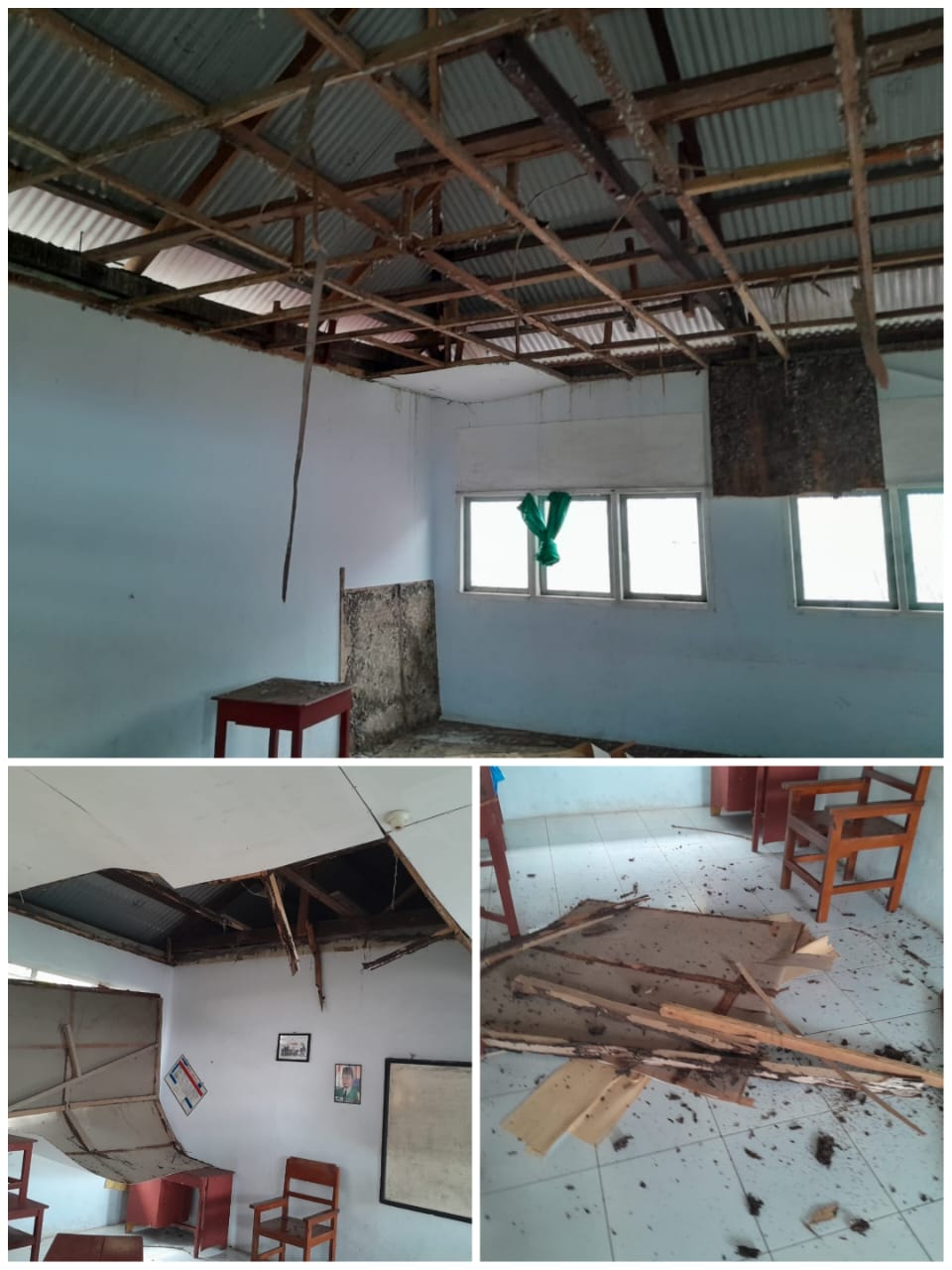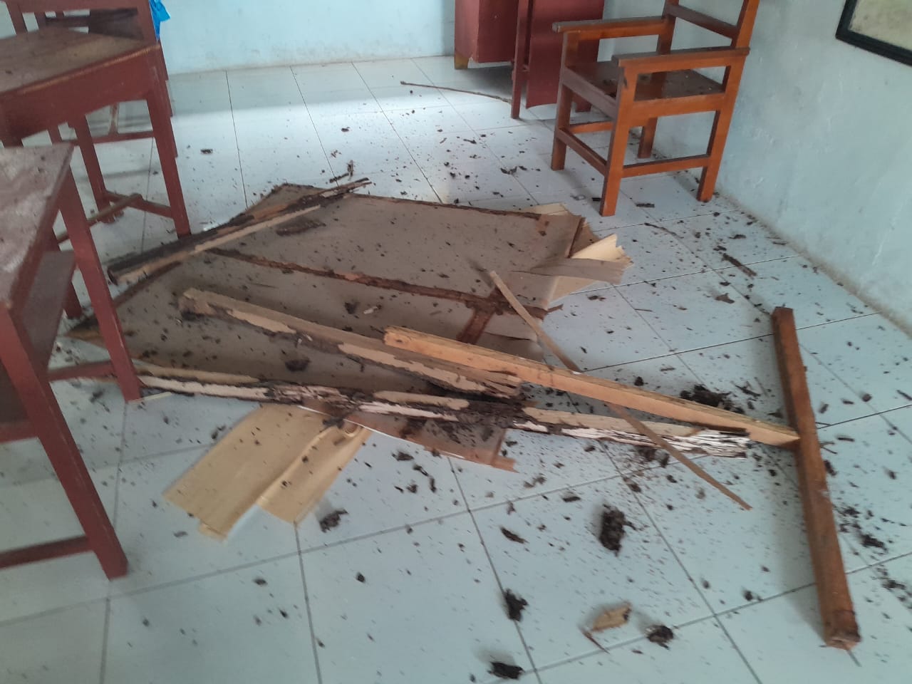 Pasalnya dari amatan kabarpublik.id, beberapa plafon terutama dua ruang kelas siswa mengalami rusak berat karena sudah lapok, dinding musala juga menjadi kusam dan kotor karena ada kebocoran dari atapnya, juga merembet ke ruang lainnya.