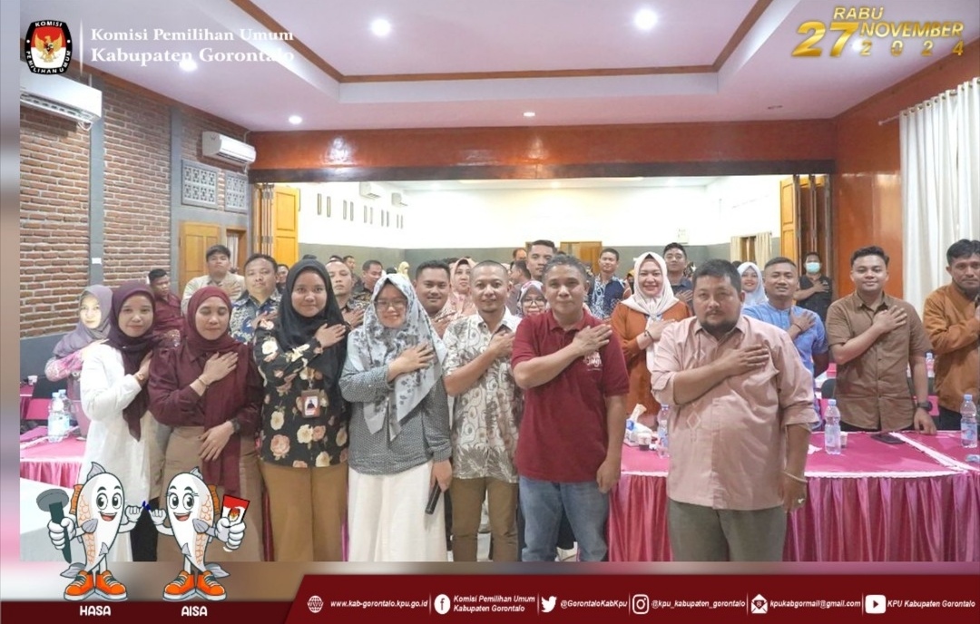 Sekretaris KPU Adrian U. Mustafa, Kasubag Teknis Penyelenggaraan Pemilu Haris Pomanto, staf sekretariat terkait, serta seluruh Ketua dan Anggota Panitia Pemilihan Kecamatan (PPK) se-Kabupaten Gorontalo juga turut hadir.