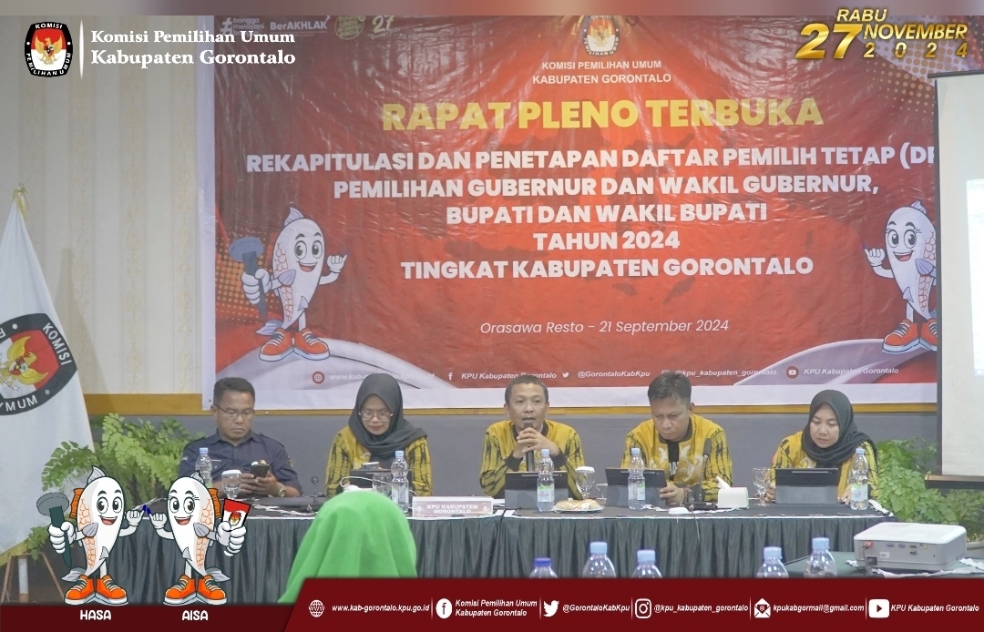 GORONTALO [kabarpublik.id] β Komisi Pemilihan Umum (KPU) Kabupaten Gorontalo resmi menetapkan Daftar Pemilih Tetap (DPT) untuk Pemilihan Kepala Daerah (Pilkada) 2024.