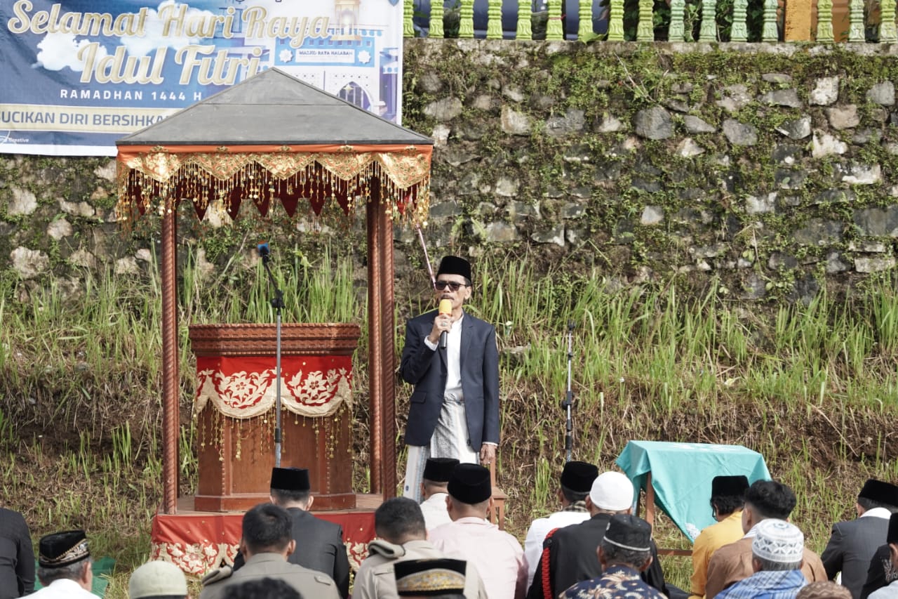 SUMBAR[kabarpublik.id] – Ribuan warga Limapuluh Kota dan perantau khususnya Nagari Halaban sejak pagi sudah memenuhi Lapangan Lokuang Kilangan, Sabtu (22/04/2023) untuk melaksanakan Shalat Idul Fitri 1444 Hijriyah. Terlihat kegembiraan dan kelegaan pada wajah-wajah jemaah Shalat Id yang memadati lapangan di Selatan Kabupaten Limapuluh Kota tersebut. Betapa tidak, untuk pertama kalinya Pemerintah Kabupaten Limapuluh Kota menggelar Shalat Idul Fitri di Nagari yang berbatas langsung dengan Kabupaten Tanah Datar tersebut dan dihadiri Bupati Limapuluh Kota Safaruddin Dt.Bandaro Rajo.