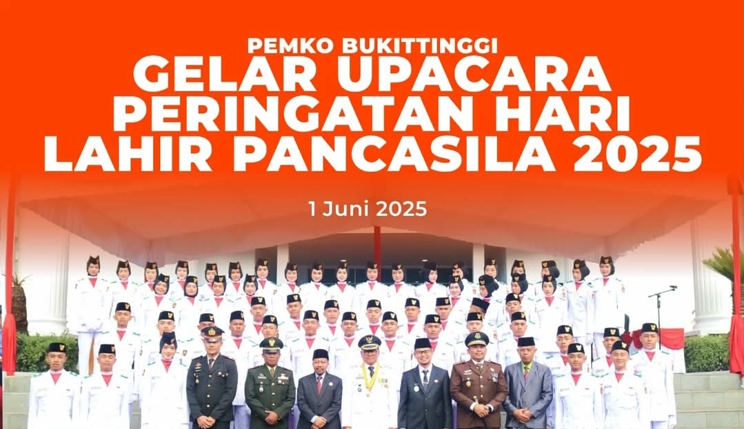 SUMATERA BARAT[kabarpublik.id] – Pemerintah Kota Bukittinggi menggelar upacara peringatan Hari Lahir Pancasila (Harlah) tahun 2025. Upacara tersebut berlangsung khidmat di Halaman Balai Kota Bukittinggi, Minggu, 1 Juni 2025.