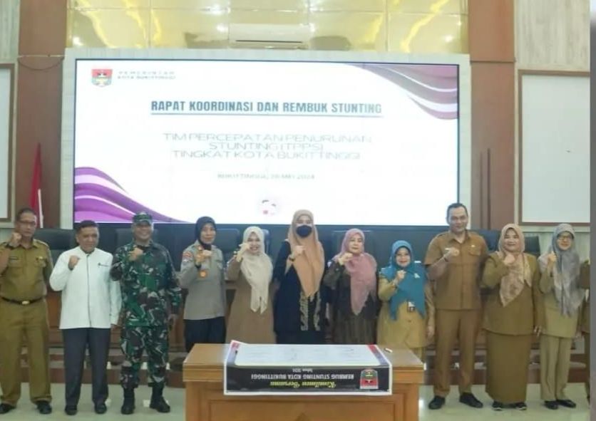 SUMATERA BARAT [kabarpublik.id] – Pemerintah Kota Bukittinggi gelar Rapat Koordinasi dan Rembuk Stunting dalam rangka upaya percepatan penurunan stunting tingkat Kota Bukittinggi Tahun 2024. Kegiatan ini diikuti oleh unsur Forkopimda, Perguruan Tinggi, Kemenag, Kepala OPD, Camat, serta Lurah di Aula Balaikota Bukittinggi, Selasa, 28 Mei 2024.