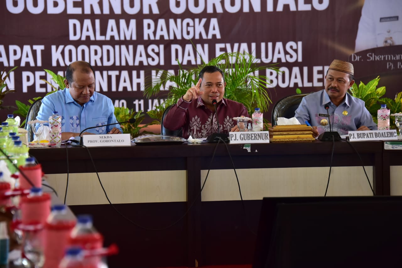 Hal ini diungkapkan oleh Penjabat Gubernur Gorontalo, Ismail Pakaya pada roadshow rapat koordinasi dan evaluasi dengan Pemerintah Kabupaten Boalemo, di aula pendopo kantor Bupati, pada Kamis (11/1/2024).