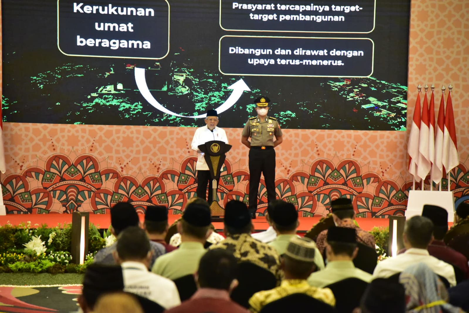 “Sebagai negara majemuk seperti Indonesia, kerukunan umat beragama merupakan salah satu prasyarat tercapainya target-target pembangunan. Sebab dengan terciptanya kerukunan, solidaritas antarumat untuk membangun negeri hingga ke daerah – daerah pun akan terwujud,” Ujar Wapres.