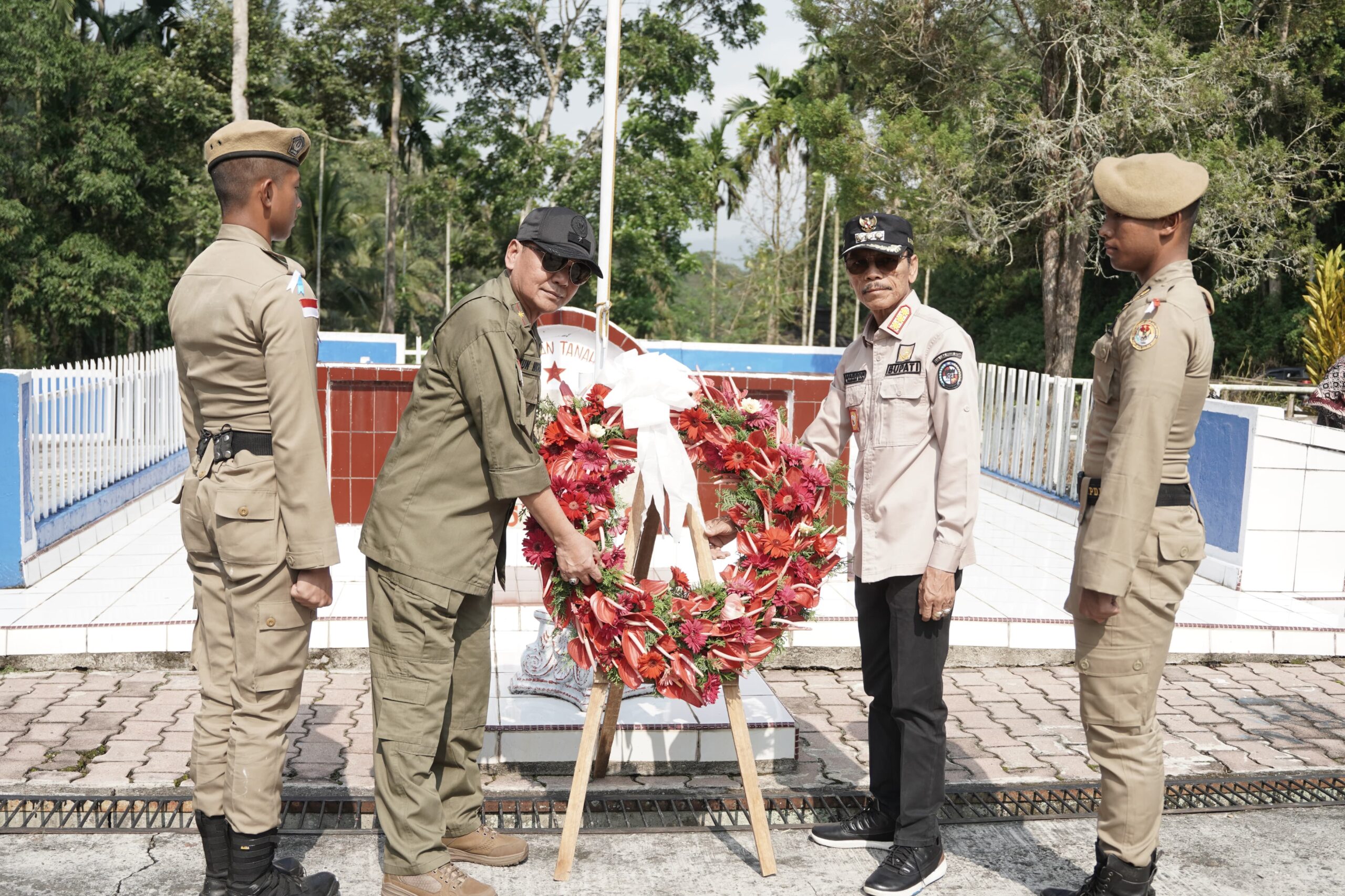 SUMBAR [kabarpublik.id] – Bupati Limapuluh Kota, Safaruddin Dt.Bandaro Rajo memimpin upacara tabur bunga Praja Muda Angkatan XXXIII IPDN (Institut Pemerintahan Dalam Negeri) Kampus Sumatera Barat di Taman Makam Pahlawan Lurah Kincia, Situjuah Batua, Minggu, (15/10/2023). Tidak hanya upacara tabur bunga, kegiatan yang bertujuan untuk penanaman nilai juang bagi Praja Muda tersebut juga dirangkai dengan sejumlah kegiatan positif lain diantaranya jalan juang, kemah juang, penanaman pohon, dan sosialisasi tentang sejarah peristiwa Situjuah. Tampak hadir dalam kegiatan tersebut, Direktur IPDN Sumatera Barat Dr.Tun Suseno bersama jajaran, Asisten I Pemda Limapuluh Kota Herman Azmar, Kepala Kesbangpol Joni Amir, Camat Situjuah Limo Nagari Rumelia bersama unsur Forkopimca, Wali Nagari Situjuah Batua Don Vesky dan sejumlah tokoh masyarakat Sijutuah Batua.