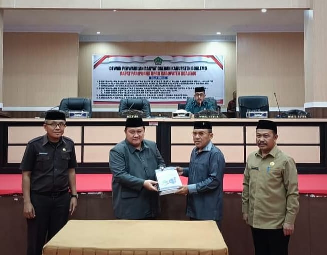 Kemudian Penjabat Bupati Boalemo Hendriwan didampingi Sekda Boalemo Sherman Moridu menyerahkan dokumen rencana Peraturan Daerah (Ranperda ) kepada Ketua DPRD Karyawan Eka Putra,S.Sos untuk dibahas di tingkat Fraksi DPRD.