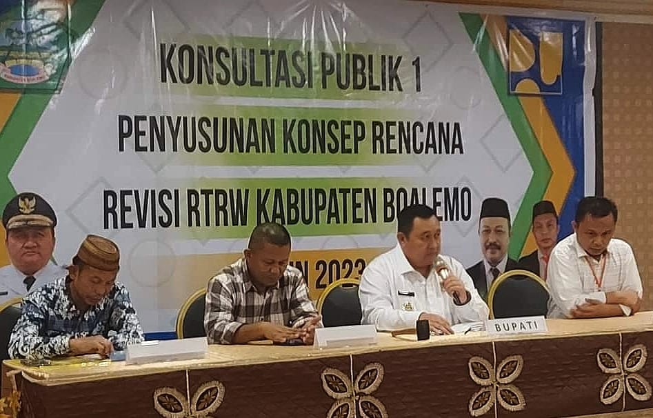 GORONTALO [kabarpublik.id] – Pemerintah Daerah melalui Dinas Pekerjaaan Umum dan Penataan Ruang (PUPR) Kabupaten Boalemo menggelar Konsultasi Publik I tentang Penyusunan Konsep Rencana Tata Ruang Wilayah (RTRW) Kabupaten Boalemo, bertempat di Hotel Rachmat Kota Gorontalo, Jum’at (14/4/2023).