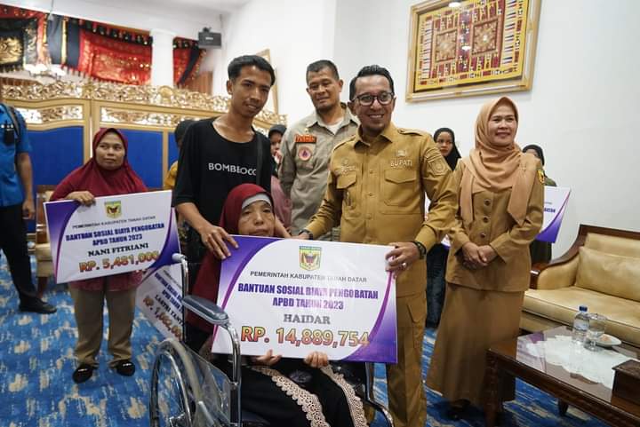 Bantuan total Rp83.365.754,- diserahkan Bupati Tanah Datar Eka Putra kepada korban dan perwakilan, Selasa (14/11/2023) di Indojolito Batusangkar turut didampingi Kadis Kesehatan Yesrita Zedrianis, Kalaksa BPBD Yusnen, Kepala RSUD M. Ali Hanafiah Nurman Eka Putra, Sekdis Koperindag dan OPD terkait.