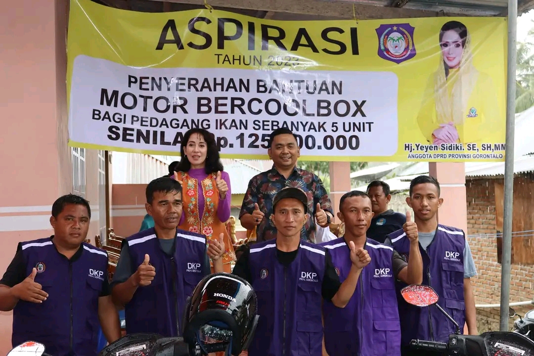 GORONTALO [kabarpublik.id] – Wakil Ketua DPRD Bone Bolango Zainuddin Pedro Bau menyampaikan ucapan terimakasih kepada anggota DPRD Provinsi Gorontalo Hj. Yeyen Sidiki, yang telah menyerahkan bantuan sepada motor lengkap dengan fasilitas coolbox untuk para pedagang ikan.