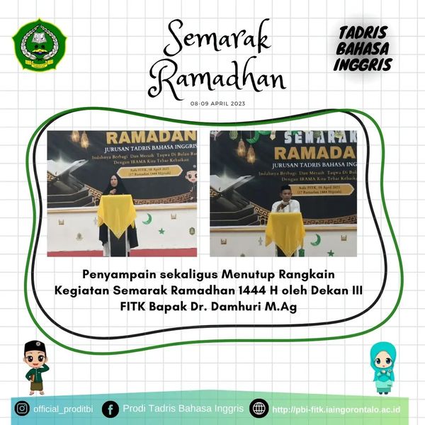 Pada kegiatan ini, Tadris Bahasa Inggris juga memberikan penghargaan kepada pemenang Juara pada Lomba yang diadakan selama kegiatan Semarak Ramadan, yaitu Lomba Hifdzil Qur’an dan Kultum.