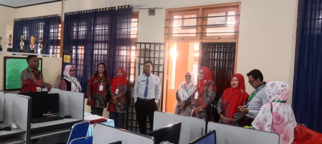 Kepala SMK Negeri 1 Kota Ternate, Ma'ruf A. Kahar saat melakukan pemantauan di ruangan praktek Usaha Layanan Parawisata dengan di dampingi para Wakil Kepala Sekolah. (Istimewa).