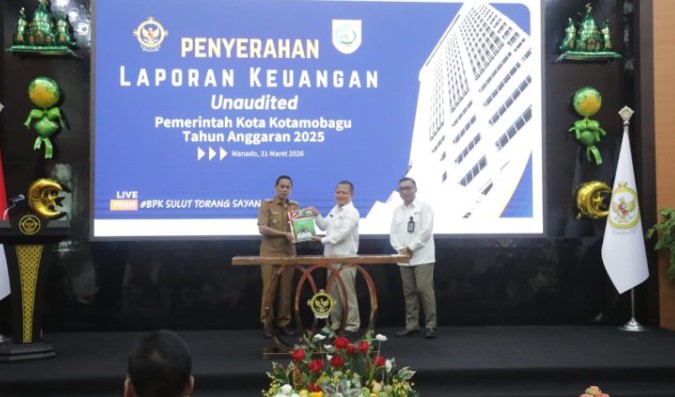 Penyerahan dilakukan langsung oleh Wali Kota Kotamobagu, Weny Gaib, dan diterima Kepala BPK Perwakilan Sulawesi Utara, Bombit Agus Mulyo, di Kantor BPK Perwakilan Sulut, Manado, Selasa (31/3/26).