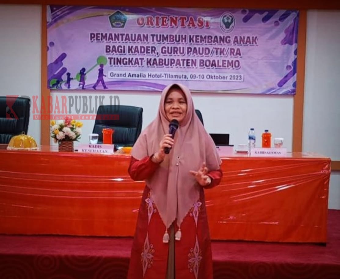 GORONTALO [kabarpublik.id] – Dinas Kesehatan Kabupaten Boalemo menggelar Orientasi Pemantauan Tumbuh Kembang Anak Bagi Kader, Guru PAUD/TK/RA tingkat Kabupaten Boalemo, di Hotel Grand Amalia Tilamuta, Senin (09/10/2023).