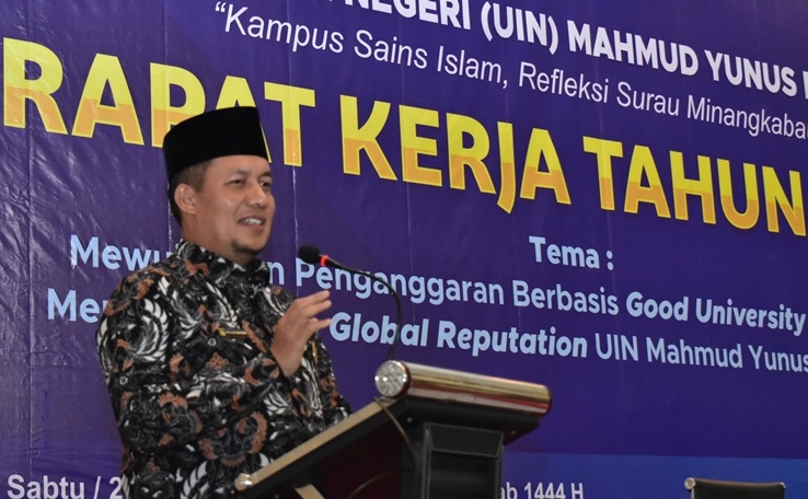 Hal ini disampaikan Rektor Universitas Islam Negeri (UIN) Mahmud Yunus Batusangkar Prof. Dr. Marjoni Imamora, M.Sc dalam pembukaan Rapat Kerja Tahun 2023 untuk perencaan pengelolaan keuangan di tahun 2024.