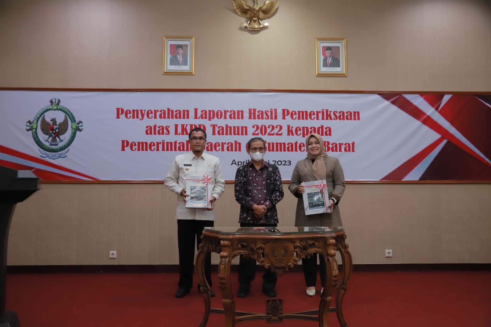 Wulan ikut bersama Penjabat Wali Kota Payakumbuh Rida Ananda menerima Laporan Hasil Pemeriksaan LKPD Tahun 2022 di Kantor BPK Perwakilan Sumatera Barat, Padang (14/4).